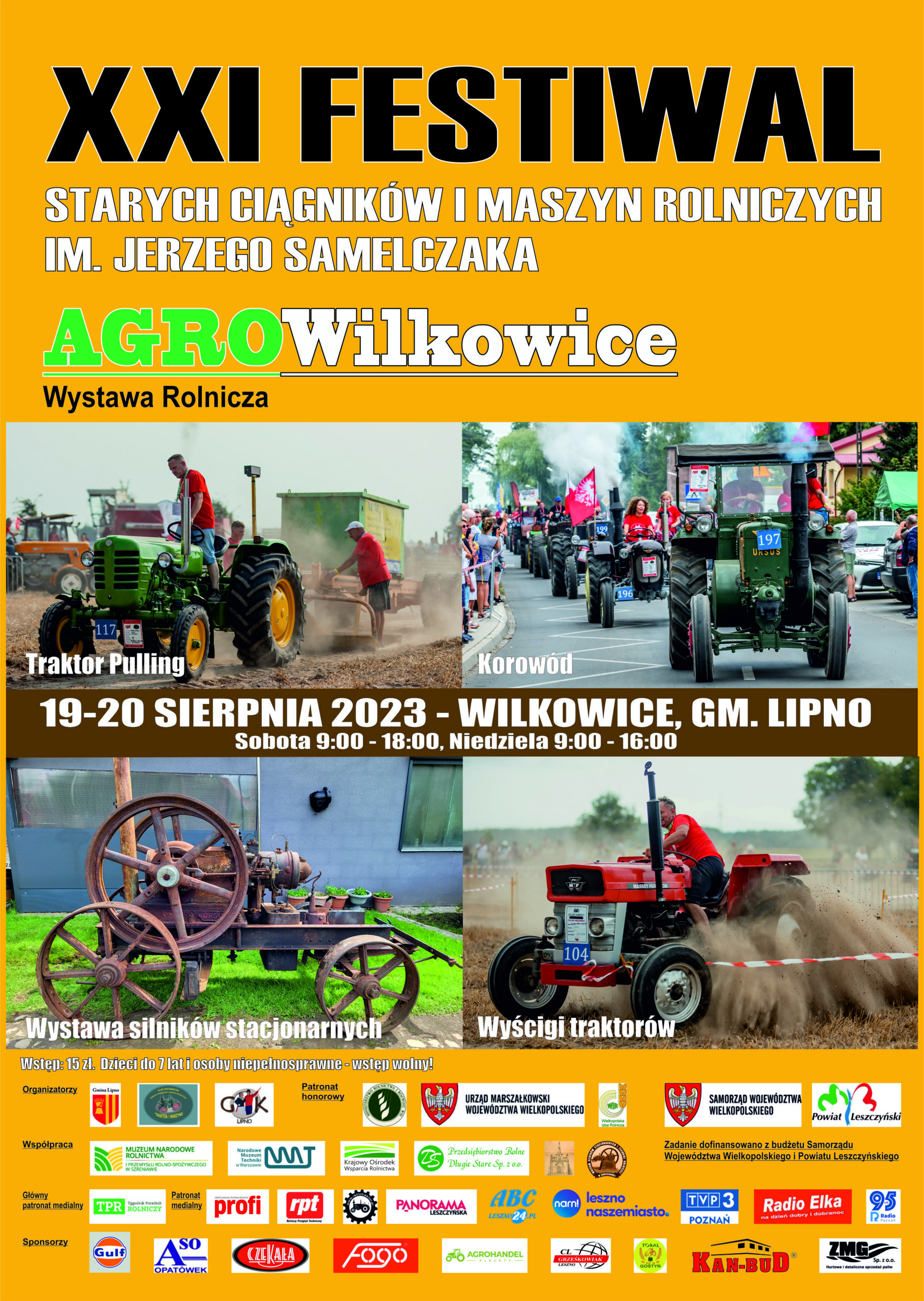 Zapraszamy na XXI Międzynarodowy Festiwal Starych Ciągników i Maszyn Rolniczych im. Jerzego Samelczaka - największy w Polsce i Europie Środkowo-Wschodniej zlot kolekcjonerów i miłośników zabytkowej mechanizacji rolnictwa, który odbędzie się 19 i 20 sierpnia 2023 roku w Wilkowicach (gmina Lipno, powiat leszczyński, Polska).